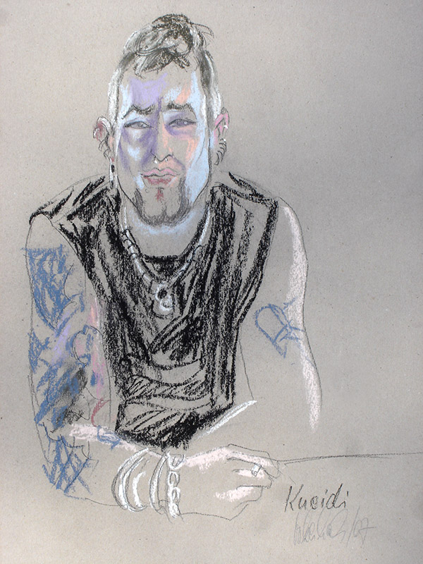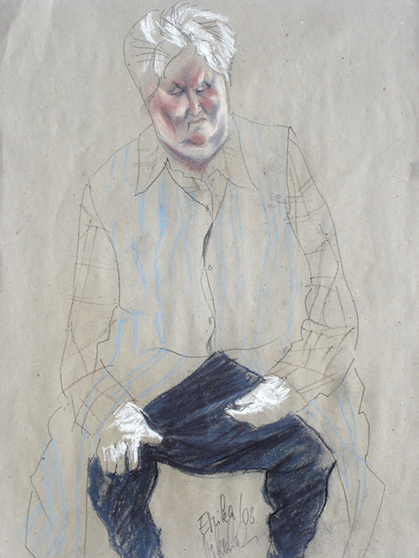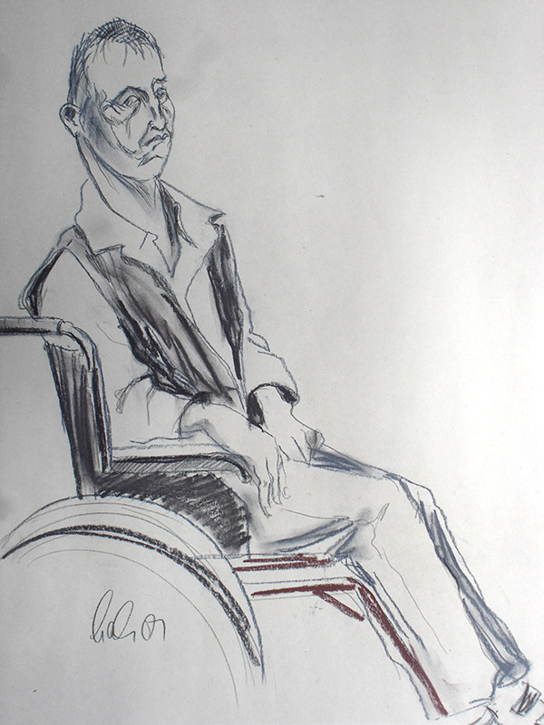 Obdachlose, behinderte und blinde Menschen zu zeichnen ist eine große Herausforderung. Am Anfang gilt es Vertrauen herzustellen. Durch intensive Gespräche und daraus resultierendem Kennenlernen ist es Volker Hahn gelungen, eine entspannte Atmosphäre zu schaffen, die zum Gelingen beigetragen hat.